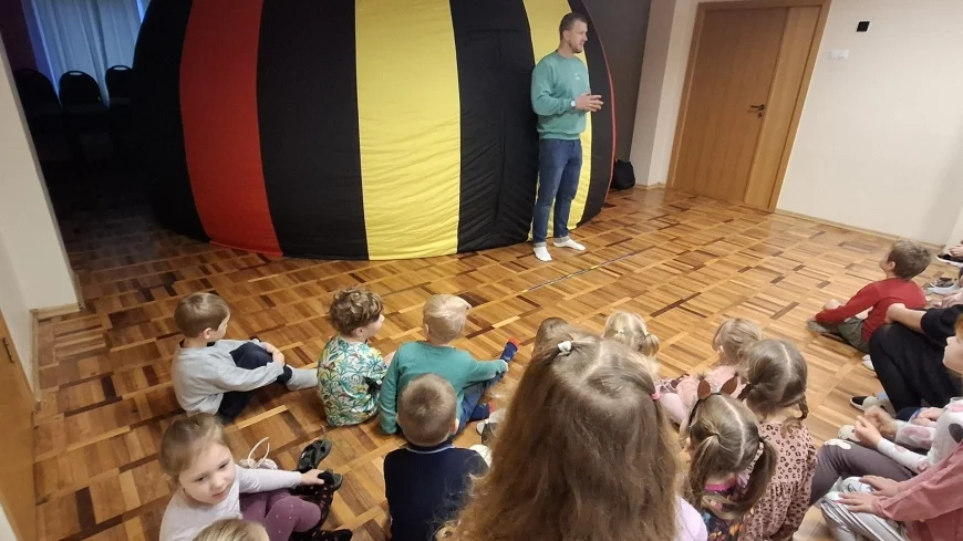 Bērniem bija iespēja piedzīvot neaizmirstamu nodarbību piepūšamajā digitālajā kupolā. Kopā iepazinām Visuma noslēpumus – vērojām debess ķermeņus, pārrunājām to pazīmes un uzzinājām daudz jauna.